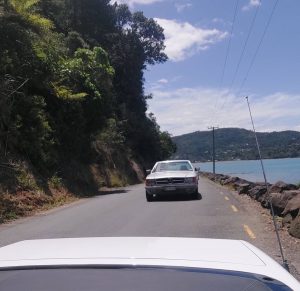 First stop the petrol station to fill up to the 2nd click, and then we doubled back, went around the block and came out by the petrol station! Ignoring the temptation to fill up again we headed by a windy route to Wood Bay and on to French Bay – each of which were accessed by steep hills. Coming back up the drivers were tempted to plant foot, not good for economy.