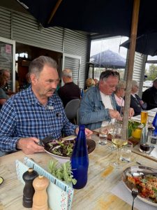 The eventual destination was 95 Parrs Cross Road, Henderson, home of the Bodega Eatery. Bodega suggests Spain, but in the current weather conditions the unlikely dirt track with barbed wire fences did not remind one of Sunny Spain. Never fear, the car park was packed (always a good sign) and we had to go to the secondary carpark which was populated with travellers, flocks of wild poultry, dogs and cats. The welcome at The Eatery was warm and the smiling multinational staff took our orders at the door and had us seated in no time. A generous three course meal was served and several members (rightly) considered that they might have earned a glass of Spanish wine to accompany their meal. Chris produced the names of the winning hunters and Sue and Arthur were the gold medallists, a very fine effort. John and Didje were close on their tails for the silver medal. Ken and Philippa got special mention, for missing a left turn so they had a longer run to the Coast. Lindsay won the “plane interesting” award for his poetic Ode to the Lonely Onion.
